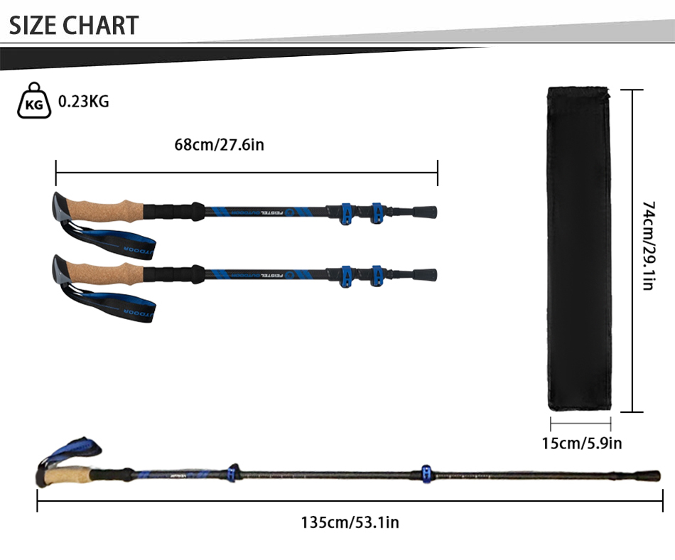 [Kompakt und reisefreundlich] Trekkingstöcke können problemlos in Gepäck, Rucksäcken und Seesäcken verstaut werden. Dieser Trekkingstock wird außerdem mit einem einfach zu verstauenden Gummispitzenschutz, einem Stockanschluss und einem Schlammkorb geliefert. [Neues und verbessertes Modell! Race-Trekking-Stöcke sind mit gepolsterten Riemen für maximalen Komfort und ergonomischen Halt ausgestattet. Es besteht kein Grund zur Sorge, dass der Trekkingstock erneut herunterfällt.