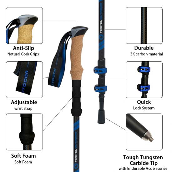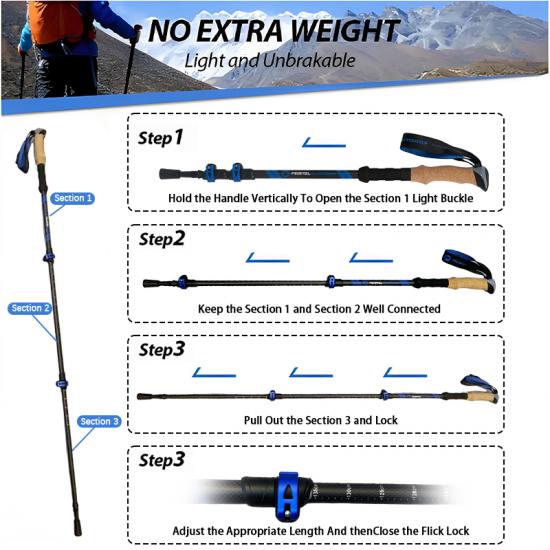 OEM-Fabrikpreis Antishock einziehbarer Wanderstock , Kohlefaser-Trekkingstöcke , Trekkingstock