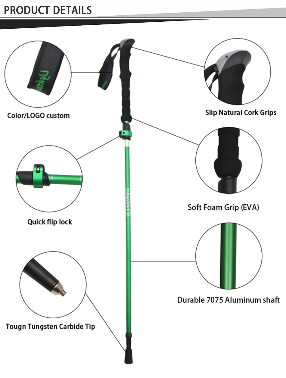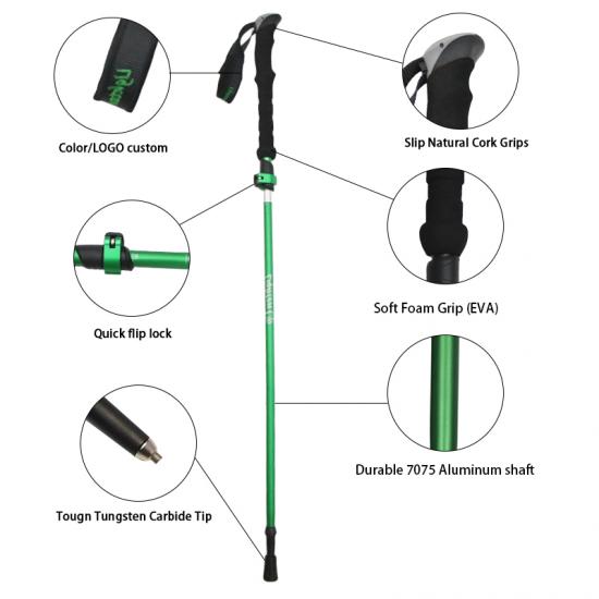 Feistel Großhandel Aluminiumlegierung EVA Korkgriff aus faltbaren Trekkingstöcken mit Schnellverschluss