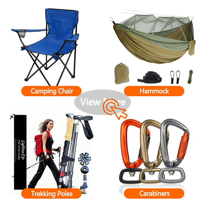 Our product line includes camping chairs, foldable trekking pole, telescopic trekking pole, camping cots, camping tables, sleeping pad, carabiner hook, camping blanket, and hammock.