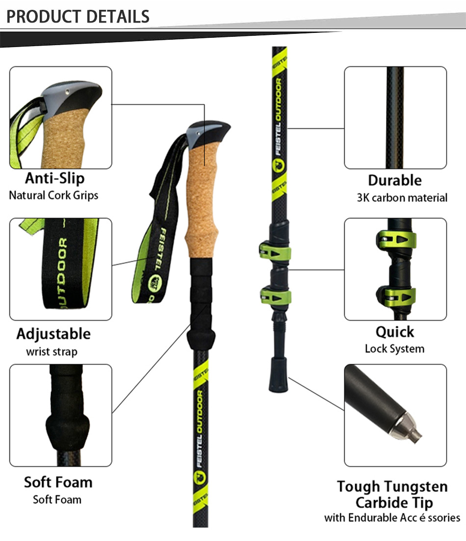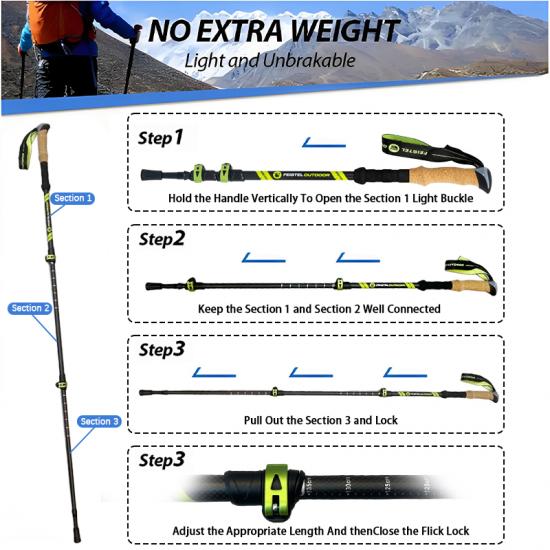OEM-Fabrikpreis Antishock einziehbarer Wanderstock , Kohlefaser-Trekkingstöcke , Trekkingstock