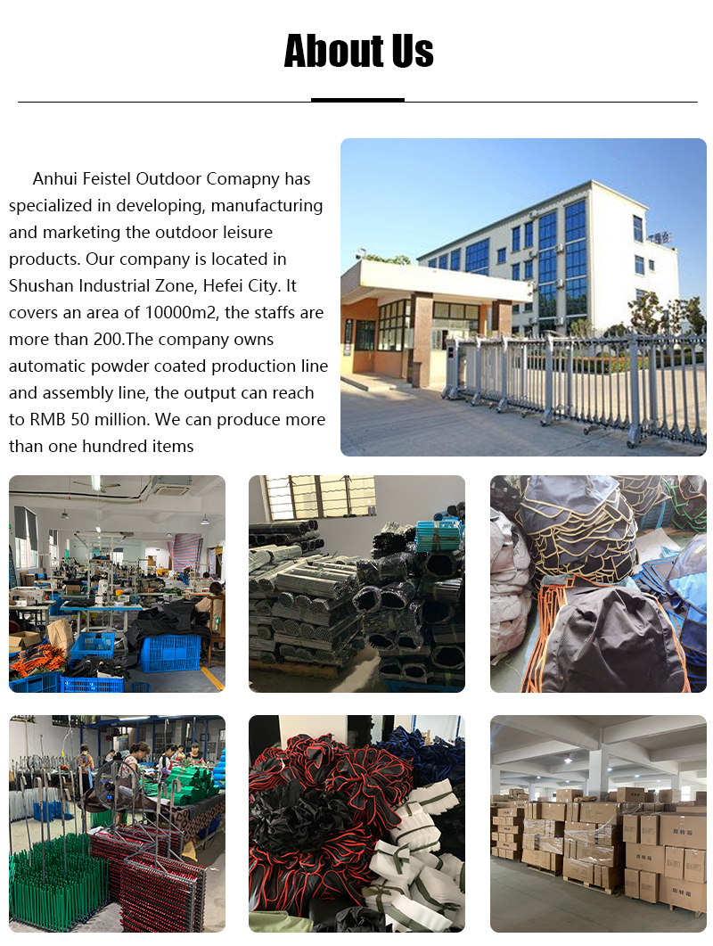 Marke : ANHUI FEISTEL FABRIK Verwandte Fertigung : OEM und ODM Produkt : Der maßgefertigte, leichte, faltbare Moon Chair aus Metalleisen bietet dauerhaften Halt und Komfort, ideal für Camping im Freien, mit einem kompakten, tragbaren Design für einfachen Transport und Lagerung.