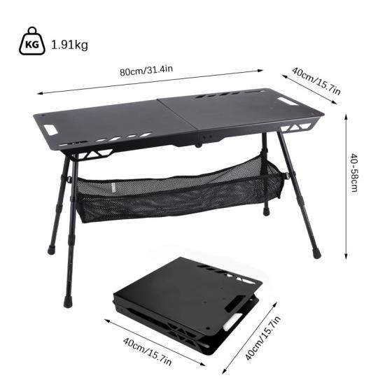Produkt : Dieser kundenspezifische Campingtisch im Freien ist ein leichter Aluminium -IGT -Camping -Tisch, der Haltbarkeit, Portabilität und Stabilität für Abenteuer im Freien, Picknicks und Campingplatz -Koch -Setups bietet.