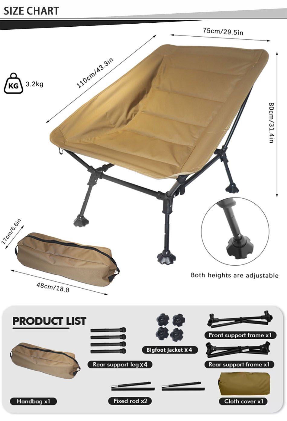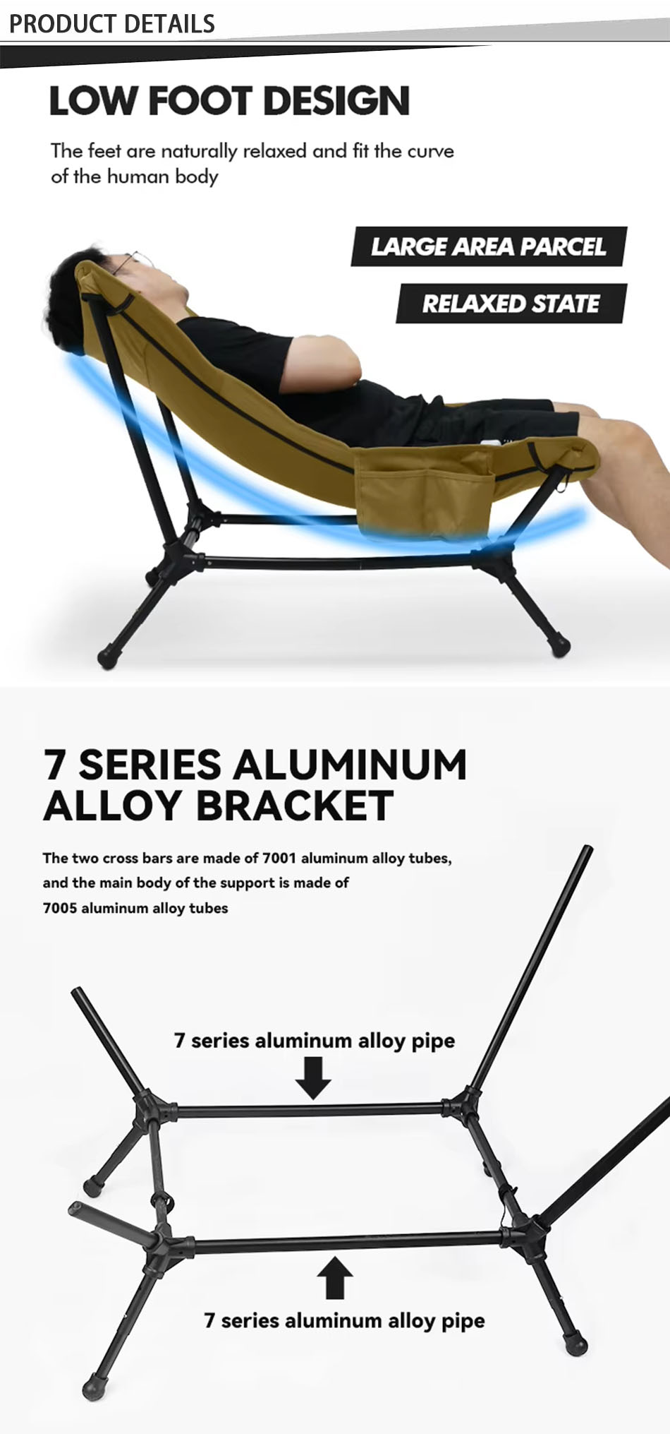 Marke : ANHUI FEISTEL FACTORY Zugehörige Fertigung : OEM und ODM Produkt : Entspannen Sie sich im Freien mit einem verstellbaren, klappbaren Campingstuhl, der mehrere Positionen für ultimativen Komfort und Bequemlichkeit während Ihrer Campingabenteuer bietet.