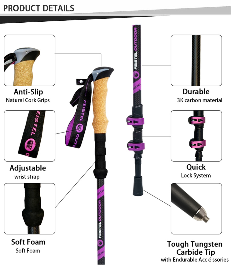 OEM-Fabrikpreis Antishock einziehbarer Wanderstock , Kohlefaser-Trekkingstöcke , Trekkingstock