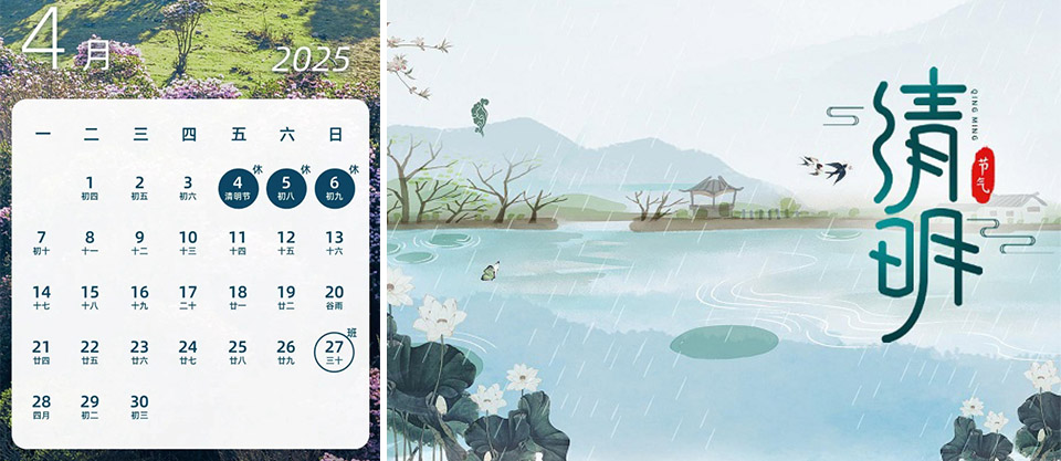 hat die Ferienregelung zum Qingming-Fest im Jahr 2025 offiziell veröffentlicht: Alle Mitarbeiter haben vom 4. bis 6. April drei Tage Urlaub und kehren am 7. April an ihren Arbeitsplatz zurück. In dieser guten Jahreszeit für Ausflüge hat das Unternehmen gleichzeitig den „Spring Camping Plan“ eingeführt, um die Zeit der Mitarbeiter im Freien mit professioneller Ausrüstung zu schützen.