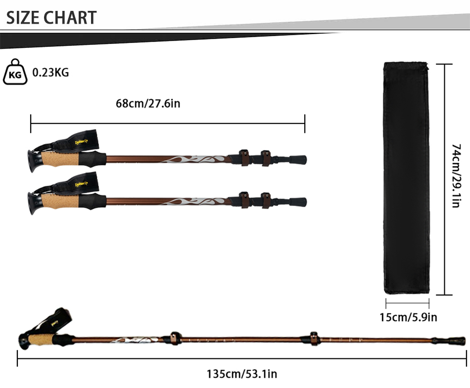 [Kompakt und reisefreundlich] Trekkingstöcke können problemlos in Gepäck, Rucksäcken und Seesäcken verstaut werden. Dieser Trekkingstock wird außerdem mit einem einfach zu verstauenden Gummispitzenschutz, einem Stockanschluss und einem Schlammkorb geliefert. [Neues und verbessertes Modell! Race-Trekking-Stöcke sind mit gepolsterten Riemen für maximalen Komfort und ergonomischen Halt ausgestattet. Es besteht kein Grund zur Sorge, dass der Trekkingstock erneut herunterfällt.