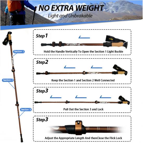 Bergtrekkingstöcke Wanderstöcke mit schnell verstellbaren Verschlüssen