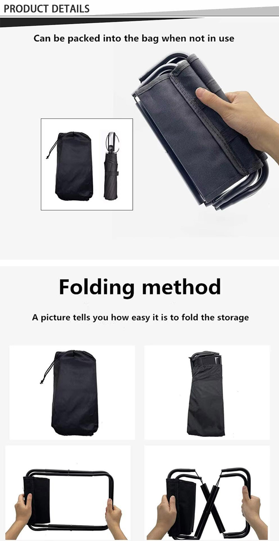 Produkt : Dieser hochfeste, wasserdichte Campinghocker aus Stahl ist leicht, zusammenklappbar und tragbar und bietet Haltbarkeit und Komfort für Strandausflüge, Camping, Wandern, Angeln und Outdoor-Abenteuer.