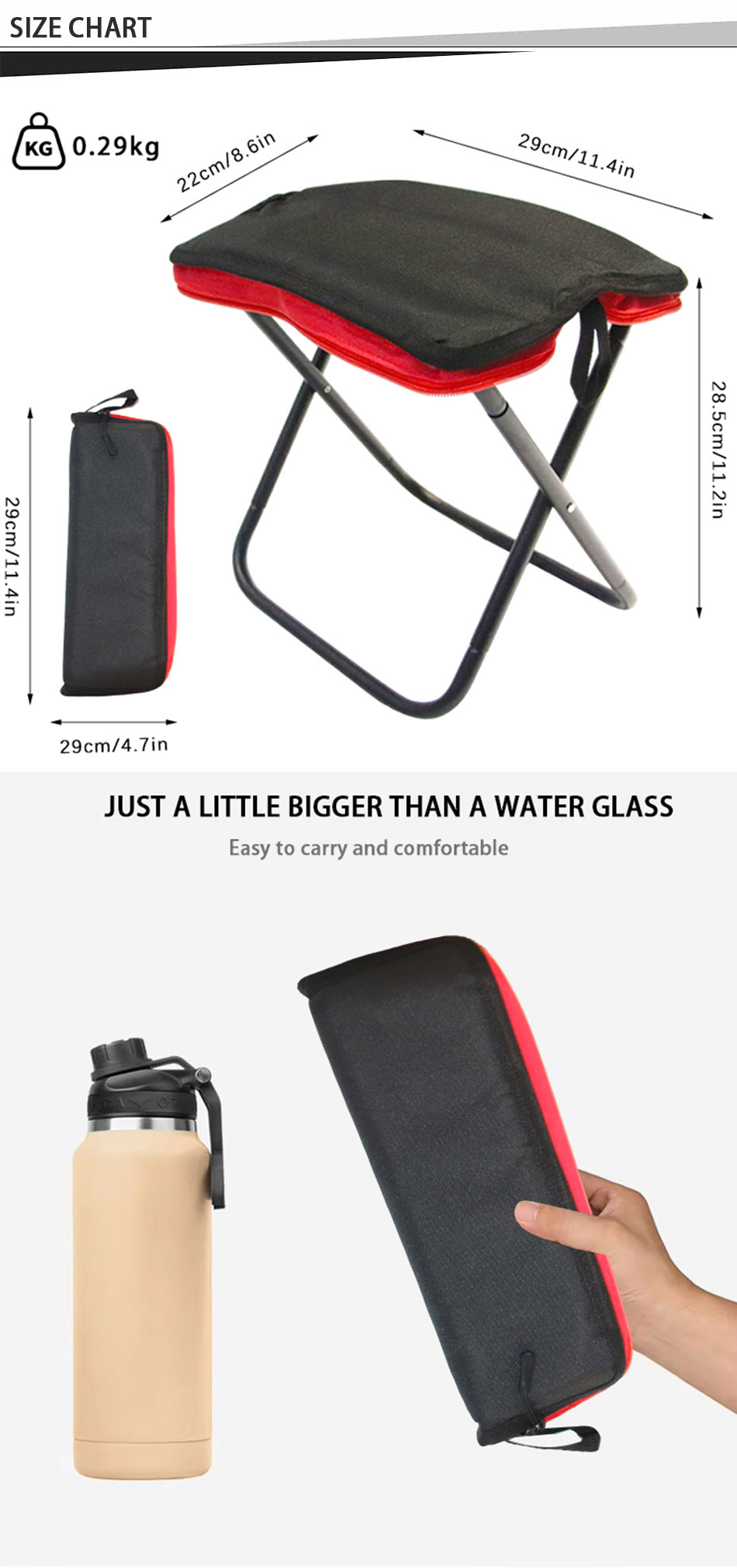 Produkt : Der Mini-Hocker für Wanderungen und Rucksackreisen kombiniert ein robustes, faltbares Design aus Oxford-Gewebe mit einer cleveren Stiftetasche und bietet so Tragbarkeit, Komfort und Praktikabilität für Campingausflüge und Outdoor-Abenteuer.