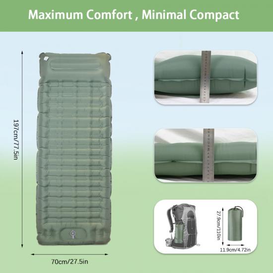 Marke : ANHUI FEISTEL FABRIK Zugehörige Fertigung : OEM und ODM Produkt : Tragbare Doppel-Isomatte mit eingebautem Luftkissen, einfach aufzublasen, leicht, kompakt, perfekt für Camping, Wandern und Rucksackreisen.