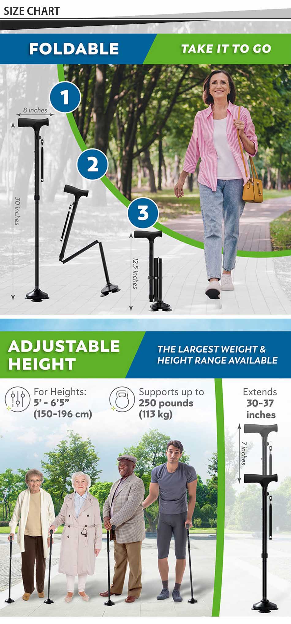 Produkt : Der neue Gehstock für ältere Männer zeichnet sich durch ein zusammenklappbares Design mit einem komfortablen T-Griff, einem stabilen, rutschfesten Fuß und einer robusten Konstruktion aus und bietet älteren Nutzern mehr Gleichgewicht, Sicherheit und Unterstützung beim Gehen im Freien.