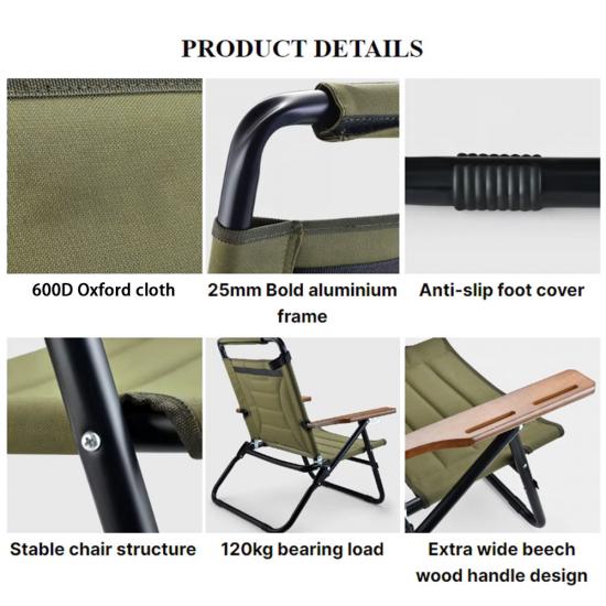 Marke : ANHUI FEISTEL FACTORY Zugehörige Fertigung : OEM und ODM Produkt : Entspannen Sie sich im Freien mit einem verstellbaren, klappbaren Campingstuhl, der mehrere Positionen für ultimativen Komfort und Bequemlichkeit während Ihrer Campingabenteuer bietet.