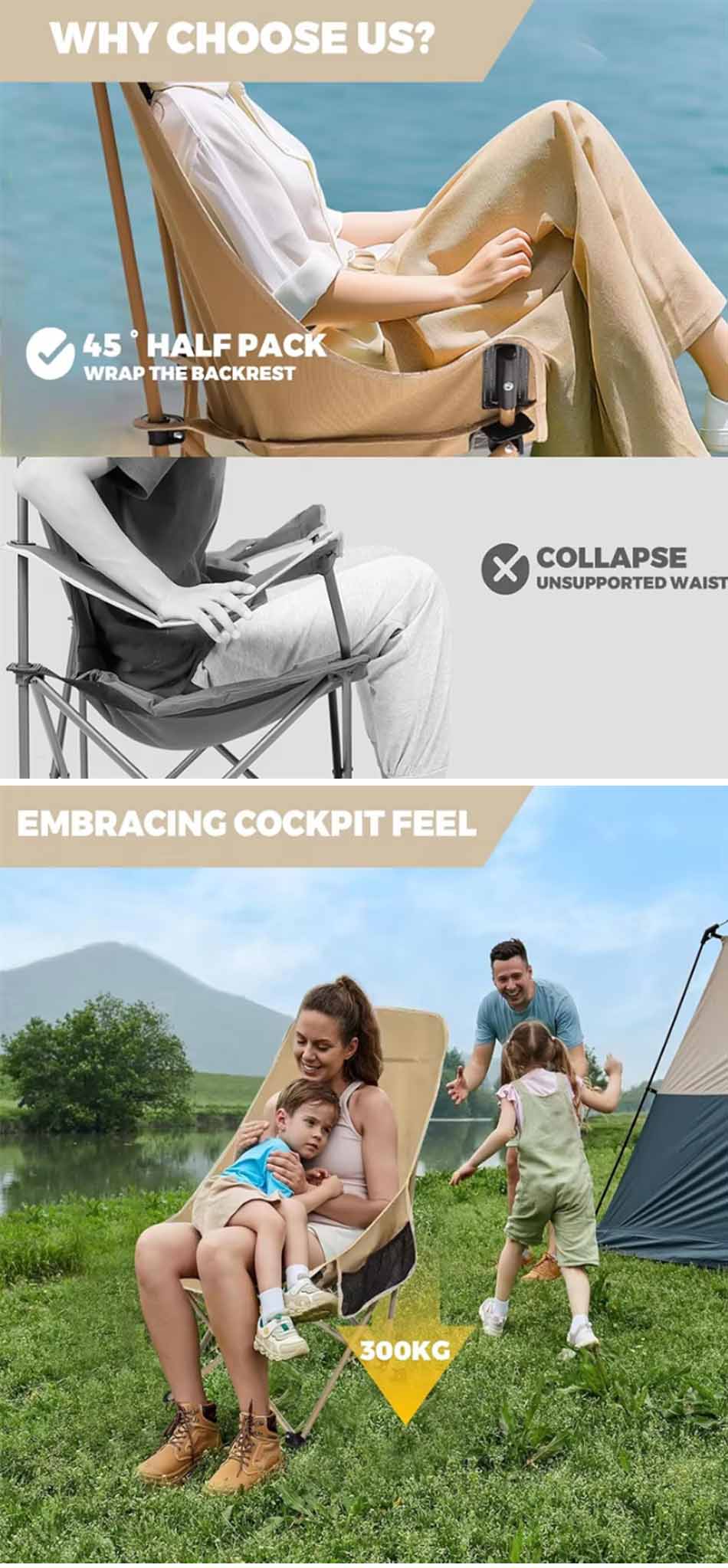 Marke : ANHUI FEISTEL FACTORY Verwandte Fertigung : OEM und ODM Produkt : Zusammenklappbare, tragbare, robuste Rocking Moon Campingstühle, tragbar und faltbar, bequem und stabil, für ein entspannendes Ruheerlebnis im Freien.