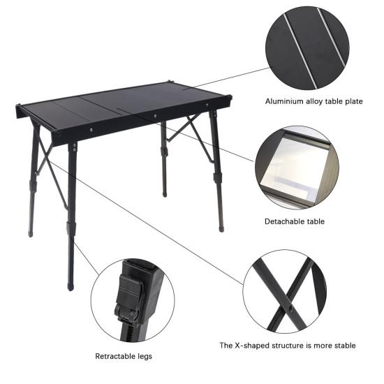 Faltbarer, maßgeschneiderter Outdoor-Igt-Free-Combination-leichter, verstellbarer, tragbarer Aluminium-Campingtisch
