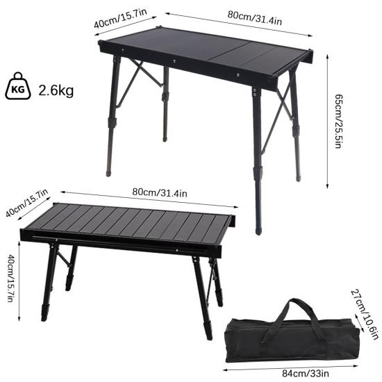 Marke : ANHUI FEISTEL FACTORY Zugehörige Fertigung : OEM und ODM Produkt : Ein tragbarer, leichter Campingtisch aus Aluminium mit verstellbarer Höhe, ideal für Outdoor-Aktivitäten wie Picknicks, Grillabende und Camping. Leicht zu falten und zu tragen.
