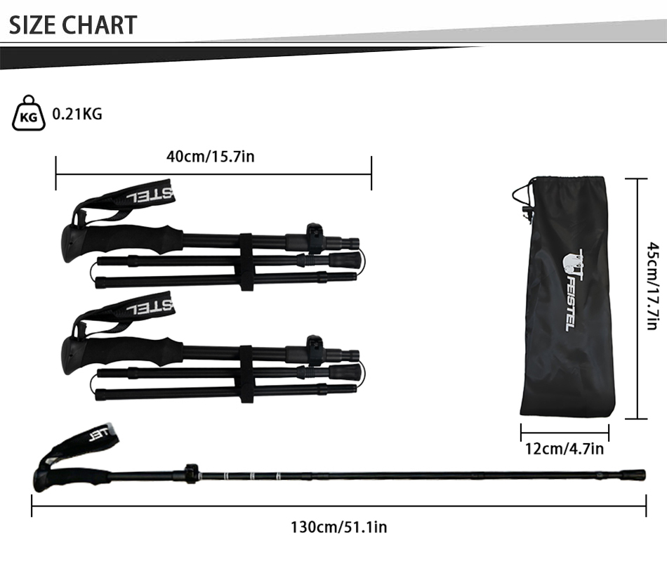 Marke : ANHUI FEISTELFABRIK Relate Manufacturing : OEM & ODM Produkt : Die ultraleichten, multifunktionalen, faltbaren Wanderstöcke aus Aluminium 7075 zeichnen sich durch eine robuste Konstruktion, komfortable EVA-Griffe und kompakte Transportierbarkeit aus und bieten zuverlässige Unterstützung beim Wandern, Klettern, Trekking und bei alltäglichen Spaziergängen.