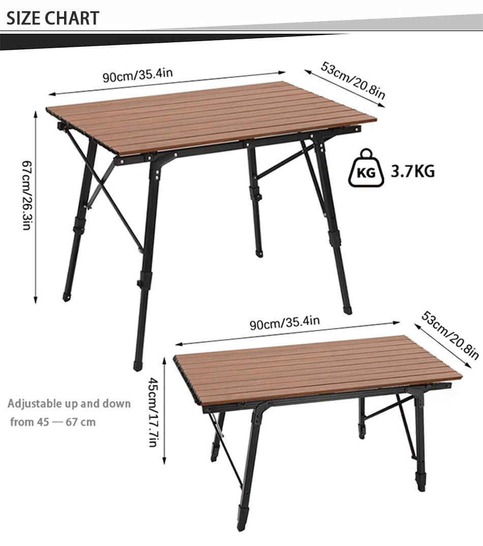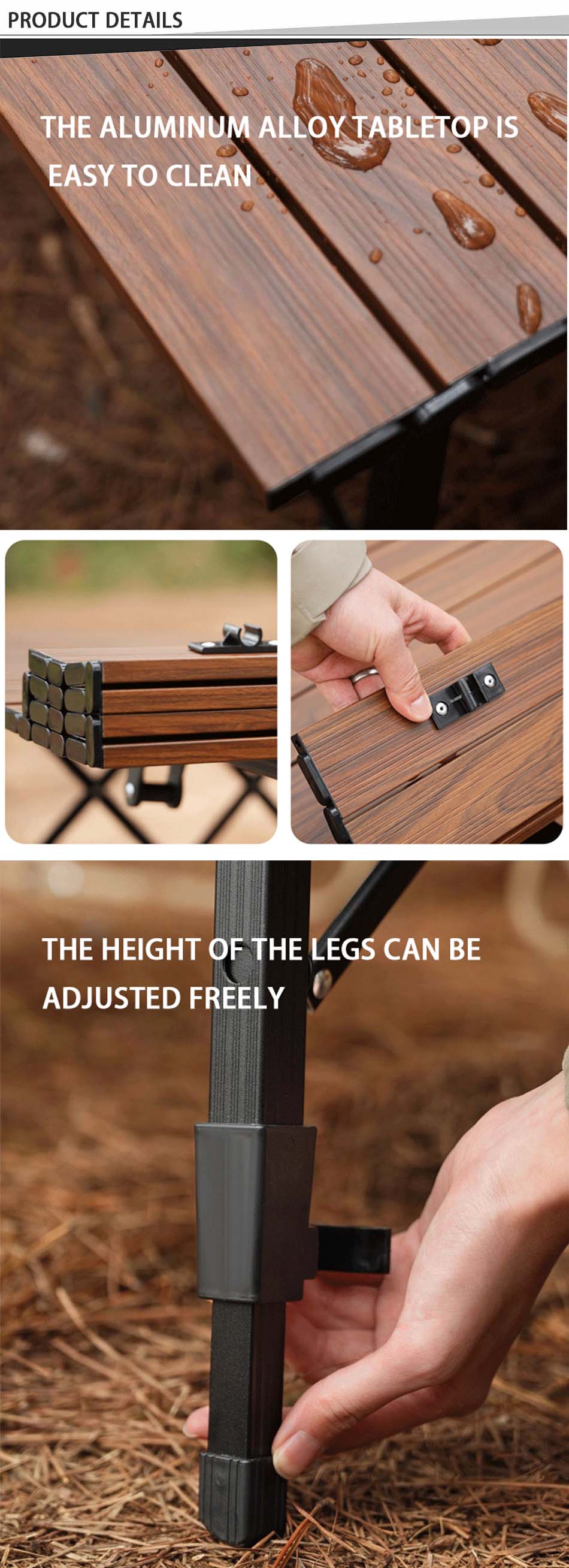 1. Design des zusammenklappbaren Campingtisches : Das zusammenklappbare Design des Tisches ist bequem zu transportieren und platzsparend. 2. Einfach zu montieren, es werden keine weiteren Werkzeuge benötigt und der Tisch kann in nur wenigen Sekunden zusammengebaut werden, was Zeit und Mühe spart. 3. Super langlebig und stabil: Hergestellt aus hochwertiger Aluminiumlegierung, robust und langlebig, wasserdicht und leicht zu reinigen. 4. Maßgeschneiderter Service: Es stehen verschiedene Größen und Farben zur Auswahl, und Sie können auch das Logo anpassen. 5. Mehrzweck: Besonders geeignet für Outdoor-Aktivitäten, verwendet als Camping-Außentisch, Wandern, Picknick, Grillen, Picknicktisch, Angeln, Strand und Innenbereich.