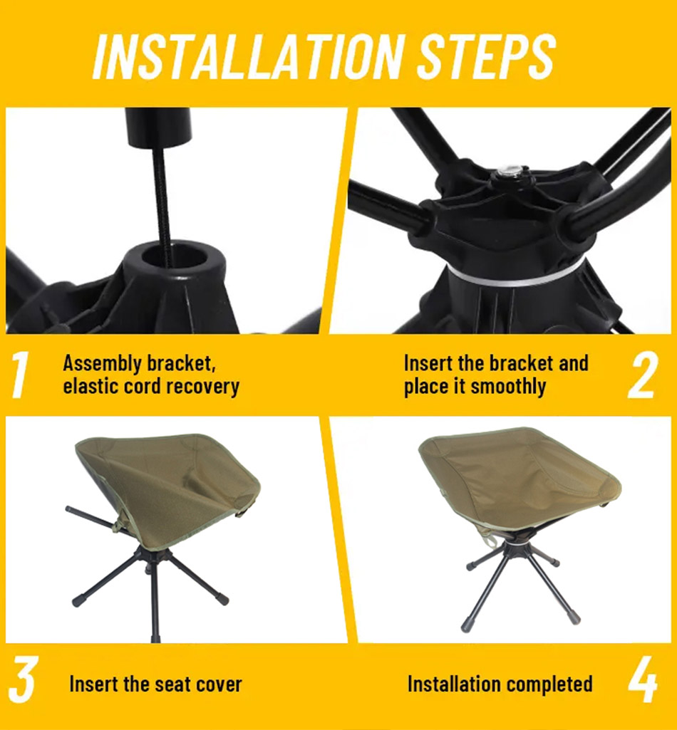 Produkt : Dieser ultraleichte, tragbare 360°-Drehstuhl für den Außenbereich ist perfekt für Strandcamping und Angeln geeignet und bietet Komfort, Stabilität und einfache Drehung für ein entspanntes Outdoor-Erlebnis.
