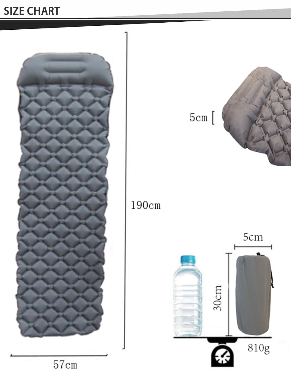 Automatische aufblasbare Campingmatten im Freien sind eine sehr praktische Outdoor-Ausrüstung. Es besteht aus dem Material Chunya Textile und ist mit PVC beschichtet, das sich durch hohe Elastizität, Komfort und Verschleißfestigkeit auszeichnet.