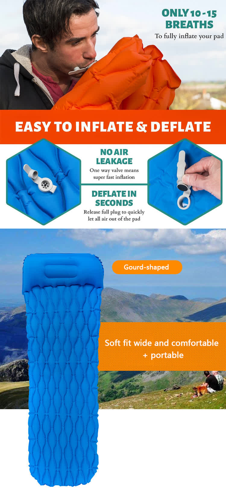 Die mitgelieferte Aufbewahrungstasche passt problemlos in Ihren Rucksack. Wandern mit dem Rucksack, Camping mit dem Auto für eine gute Nachtruhe.