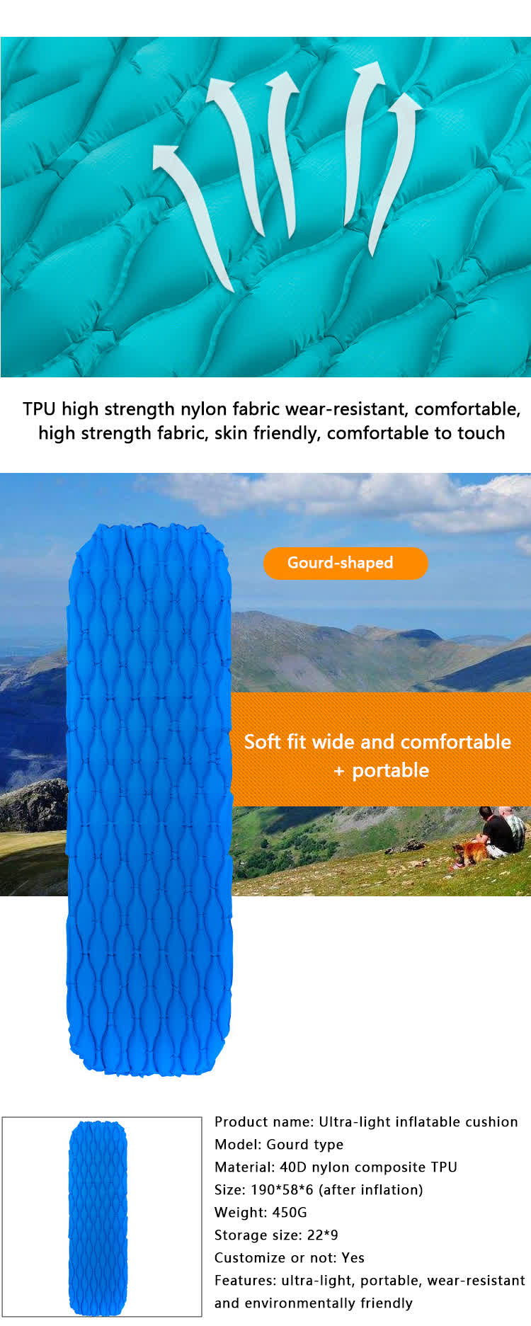 Ultraleichte aufblasbare TPU-Schlafmatte