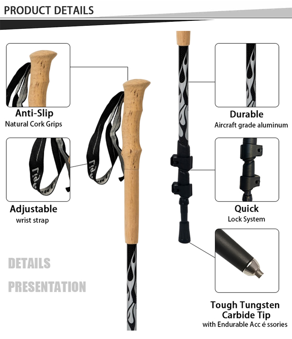 Produkt : Der ultraleichte Trekkingstock aus 90% Aluminium mit Teleskopdesign, Korkgriff, Schnellverschluss und zuverlässiger Stabilität ist ideal für Nordic Walking, Wandern und Outdoor-Abenteuer.